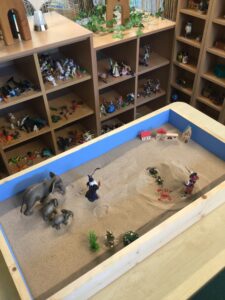 Sandtray conversations are a therapeutic way of supporting children to process and share their thoughts and emotions in a safe and contained way through the use of metaphor.